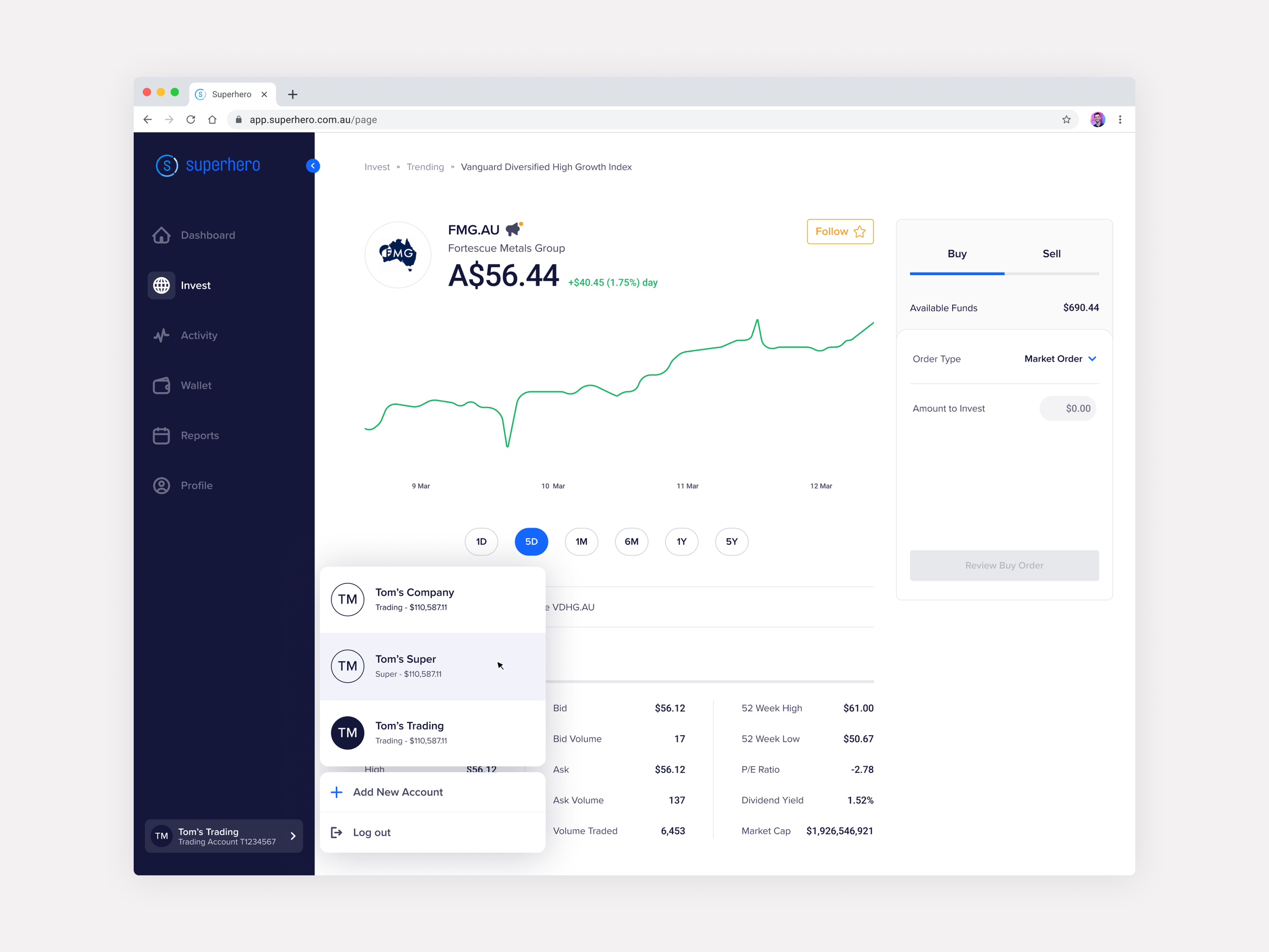 In addressing the challenges, I led a comprehensive redesign effort. Collaborating closely with the brand and marketing teams, updates were aligned with Superhero's core vision. Redesigning the entire app/web experience, I focused on modernizing the visual design to meet current accessibility standards, design trends, and aesthetic enhancements. User testing sessions guided our decisions, ensuring the revamped interface resonated with user needs. I worked closely with our developers to